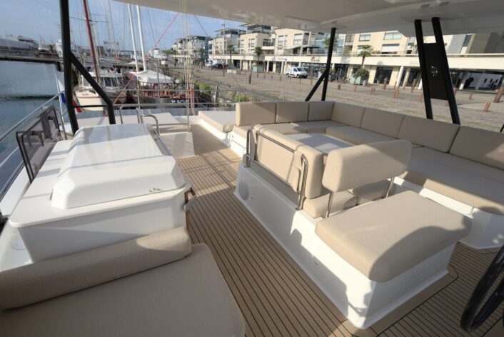 Spacious and Modern Design: The Samana 59 boasts a contemporary open-plan layout, seamlessly connecting indoor and outdoor living spaces for a relaxed and social atmosphere on board.