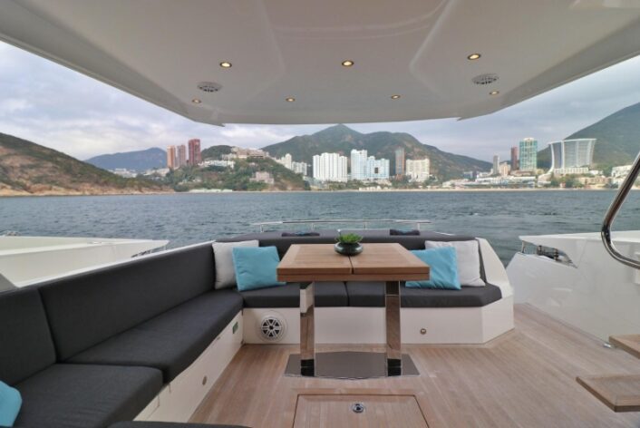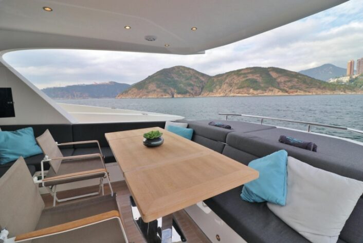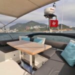 2016 Numarine 62 accommodating 15 guests for day charter. Spacious social areas, unique outdoor cinema.