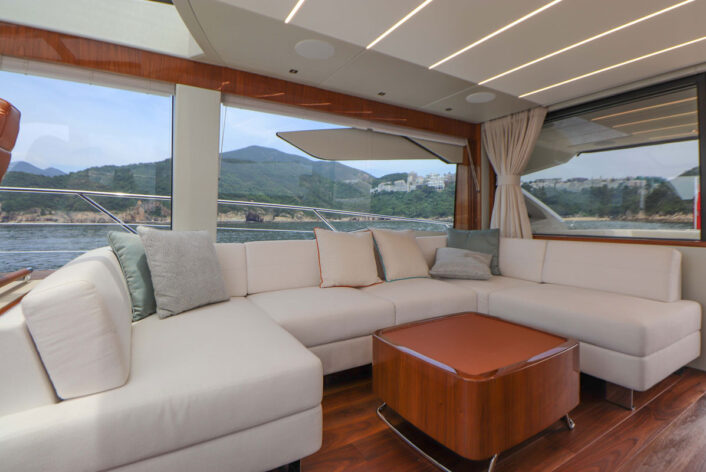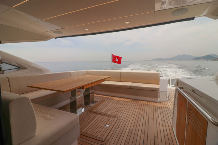 Stunning 74 foot luxury motor yacht by Sunseeker built in 2019. Fantastic yacht to entertain groups of up to 12 guests for a day charter. She can sleep up to 6 guests for overnight. A great way to explore Hong Kong waters in style.
